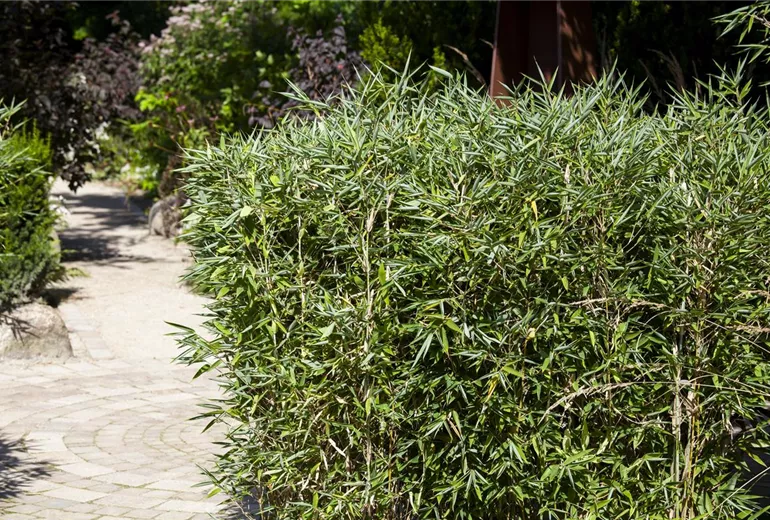 Fürs Bambus kaufen gibt es unzählige Gründe. Den ersten Grund verdankt das Gras vor allem seiner Optik. Denn wer schon einmal einen malerisch gewachsenen Bambus gesehen hat, der wird gleich dieses fernöstliche Feeling verspürt haben, das die Pflanze umgibt. Aber nicht nur in einem Asiagarten kommt das Gras gut zur Geltung. Bambus kaufen kann man sich auch für jede andere Gartengestaltung. Ob als Solitär, als Hecke oder im Kübel auf dem Balkon – Bambus ist wahnsinnig vielfältig und es gibt 1000 gute Gründe, die für den Kauf der Pflanze sprechen. Vor allem aber ist es auch ihre Anspruchslosigkeit, die die Pflanze so beliebt bei Hobbygärtnern macht. Bis auf den echten Bambus sind bei uns alle Bambus-Arten winterhart und tragen auch im Winter ihre wunderschönen grünen Blätter an den Halmen. Die sind es, die den Charme der Pflanze ausmachen. Vorsicht aber bei Schneelast! Dann können gerade die Halme der Fargesia-Arten schnell biegen und sogar abbrechen. Damit das nicht passiert kann man die Halme im Winter zusammenbinden und im Frühjahr abgebogene Äste abschneiden. Wichtig zu wissen: Ein Rückschnitt sorgt beim Bambus nicht für ein üppigeres Wachstum. Die Halme wachsen an dem Schnitt nicht weiter, denn die Pflanze bildet jedes Jahr neue Halme aus, die nur eine Saison lang wachsen.