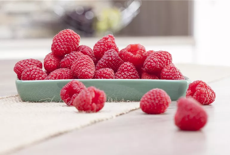 Fürs Himbeeren pflanzen braucht man keine Profikenntnisse. Die Beerensträucher lassen sich ganz einfach in die Erde bringen und wenn die Bedingungen passen, werden sie sich prächtig entwickeln. Entscheidend ist der Zeitpunkt. Als ideal hat sich der Herbst ab Oktober erwiesen, denn dann haben die Sträucher vor dem ersten Frost noch ausreichend Zeit, ihre Wurzeln tief in die Erde ragen zu lassen. Am gewählten Standort sollten zuvor noch keine Beerensträucher wie Himbeere oder Heidelbeere gestanden haben und der Boden wird vor der Pflanzung mit Kompost oder humoser Pflanzenerde angereichert. Zwischen den einzelnen Pflanzen sollte man einen Abstand von 40 bis 50 Zentimetern lassen, damit sich die Sträucher beim Wachstum nicht in die Quere kommen. Beim Himbeeren pflanzen wird ein Pflanzloch ausgegraben, das den Wurzelballen der Pflanze vollständig fassen sollte. Etwas breiter ist dabei immer ideal. Eingepflanzt werden die Beerensträucher dann so, dass die Grundknospen der Pflanze etwa 5 Zentimeter in der Höhe mit Erde bedeckt sind. Anschließend werden die Pflanzen noch durchdringend gewässert, da die Wurzeln der Himbeeren sehr trockenheitsempfindlich sind und niemals austrocknen dürfen.