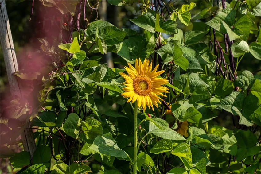 Die perfekten Nachbarn für Sonnenblumen sollten natürlich gleiche oder zumindest ähnliche Ansprüche an den Standort und Boden haben. Das bedeutet: Sonne satt und viele Nährstoffe. Wie gut, dass es viele Sommerstauden gibt, die die Sonne regelrecht anbeten und sich über die wärmenden Strahlen freuen. So sind Sonnenhut, Sonnenbraut, Studentenblume und Löwenmäulchen die perfekten Nachbarn. Letztere öffnen ihre Blüten übrigens nur in der Sonne. Aber auch Dahlien sind beliebte Nachbarn für Sonnenblumen. Mädchenauge und Kapkörbchen liefern ebenfalls wichtige Nahrung für Insekten und Schmuckkörbchen und Herbst-Anemone machen neben den großen Blüten der Sonnenblumen eine gute Figur. Im sonnigen und sommerlichen Staudenbeet dürfen diese Kombinationen also auf keinen Fall fehlen!