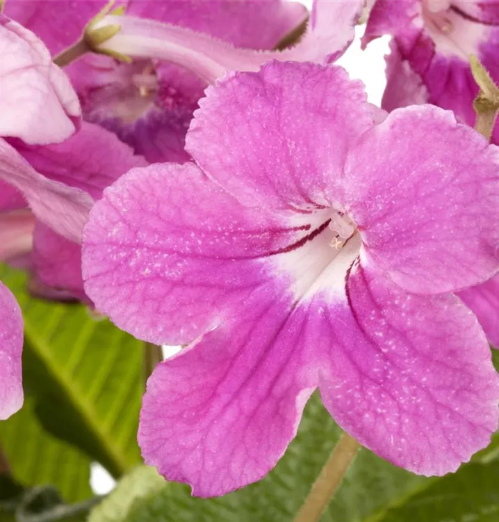 Die Drehfrucht (Streptocarpus) blüht über Monate hinweg. Je nach Sorte, erscheinen die dekorativen Blüten in den Farben Blau, Rosa, Rot, Violett und Weiß. Die glänzenden, lanzettlichen Blätter sind gekerbt. Bevorzugt wird ein halbschattiger Standort und eine durchlässige Erde.