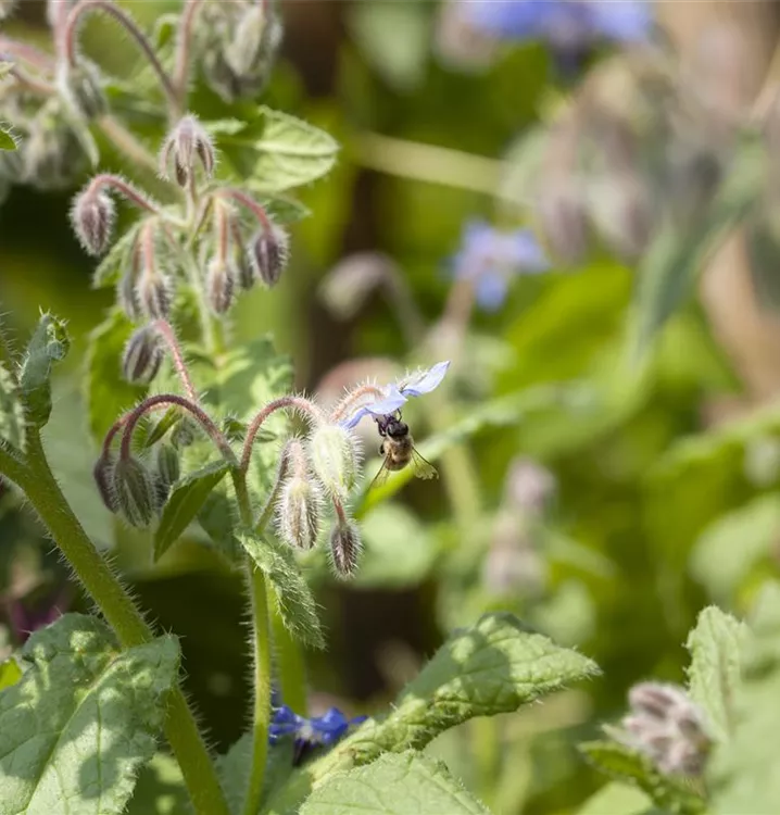 Der Borretsch (Borago officinalis) ist eine Kräuterpflanze mit einem würzigen Geschmack. Seine dunkelgrünen Blätter sind eiförmig und gezähnt, bewimpert. Für das optimale Wachstum des Borretschs werden ein sonniger Standort und durchlässiger, nährstoffreicher Boden benötigt.